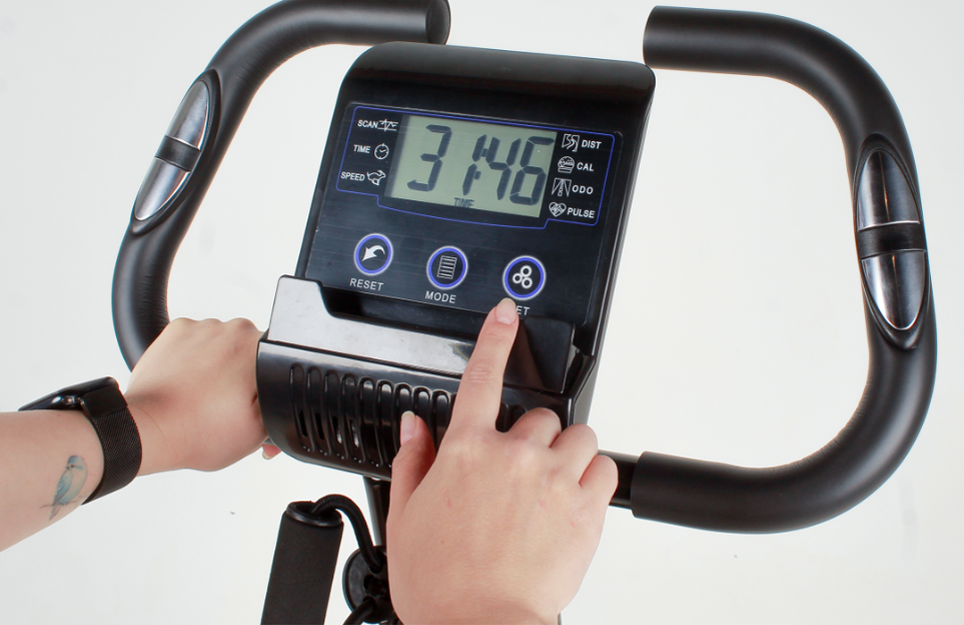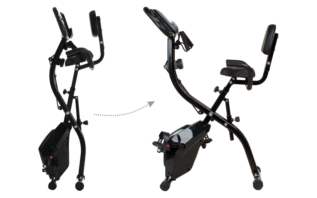 Ajustes no banco e guidão garantindo conforto e postura nos treinos. Depois é só dobrar e guardar.