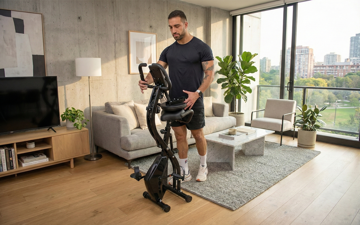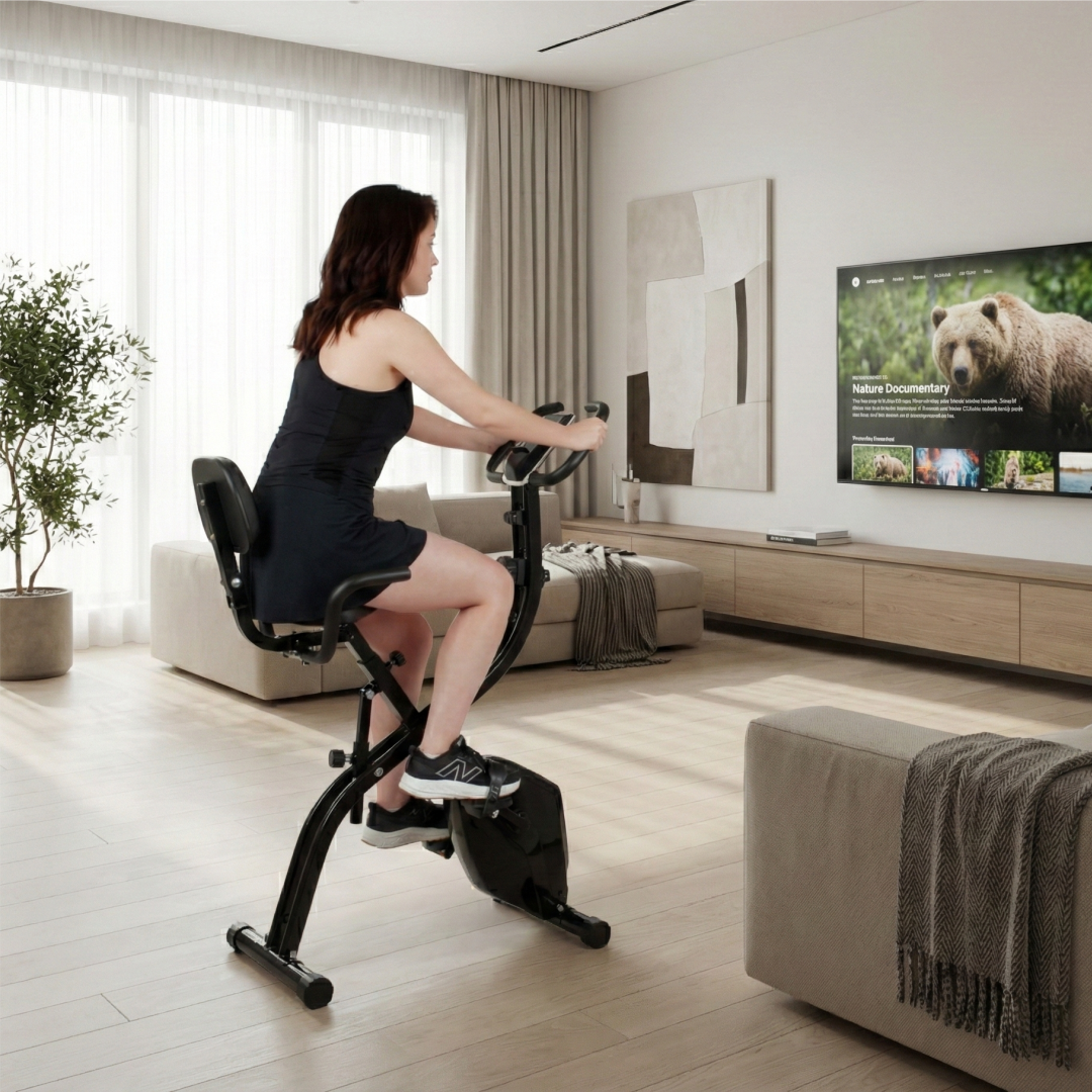 A Active Bike Dobrável foi criada para quem busca um treino moderno, prático e eficiente sem comprometer o espaço da casa. Com design ergonômico, estrutura resistente e sistema dobrável inteligente, ela transforma qualquer ambiente em uma estação completa de exercícios. Silenciosa, confortável e totalmente ajustável, é perfeita para quem deseja pedalar rumo aos resultados com praticidade e economia de espaço — e ainda guardar tudo em segundos.