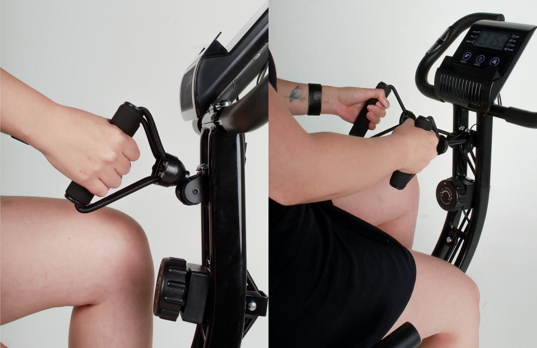 Com as alças você pode trabalhar braços, ombros e peito enquanto pedala, oferecendo um treino ainda mais completo e funcional.
