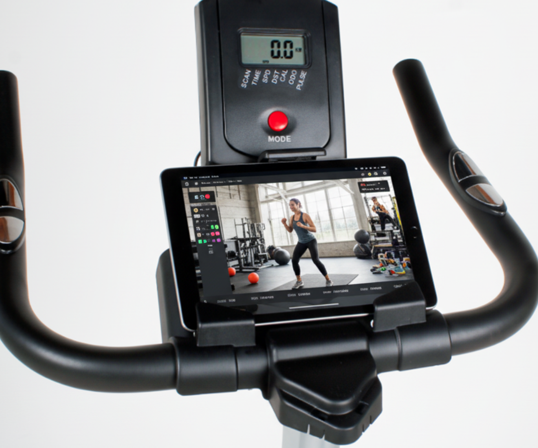 Com suporte integrado para tablet ou smartphone, seus treinos ficam mais imersivos, dinâmicos e cheios de motivação.