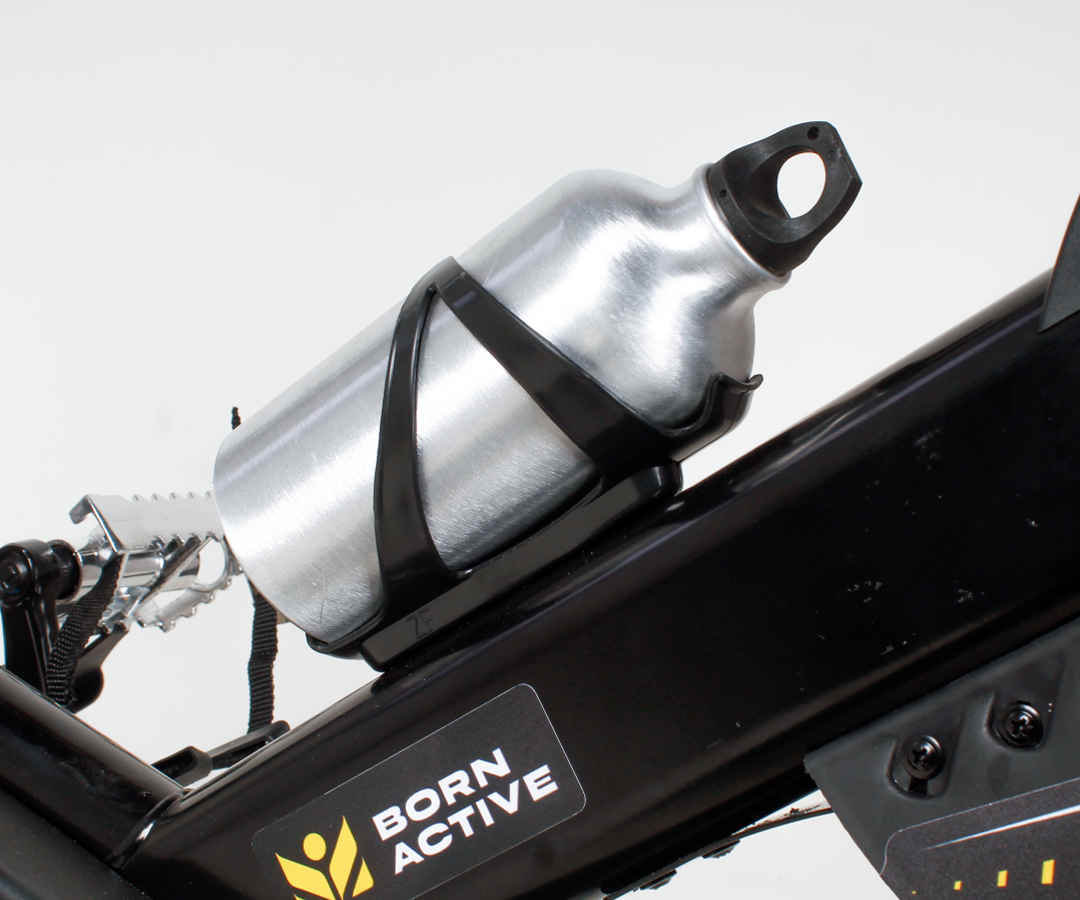 O suporte para garrafa mantém a água sempre por perto, garantindo praticidade e bem-estar durante todo o seu treino.