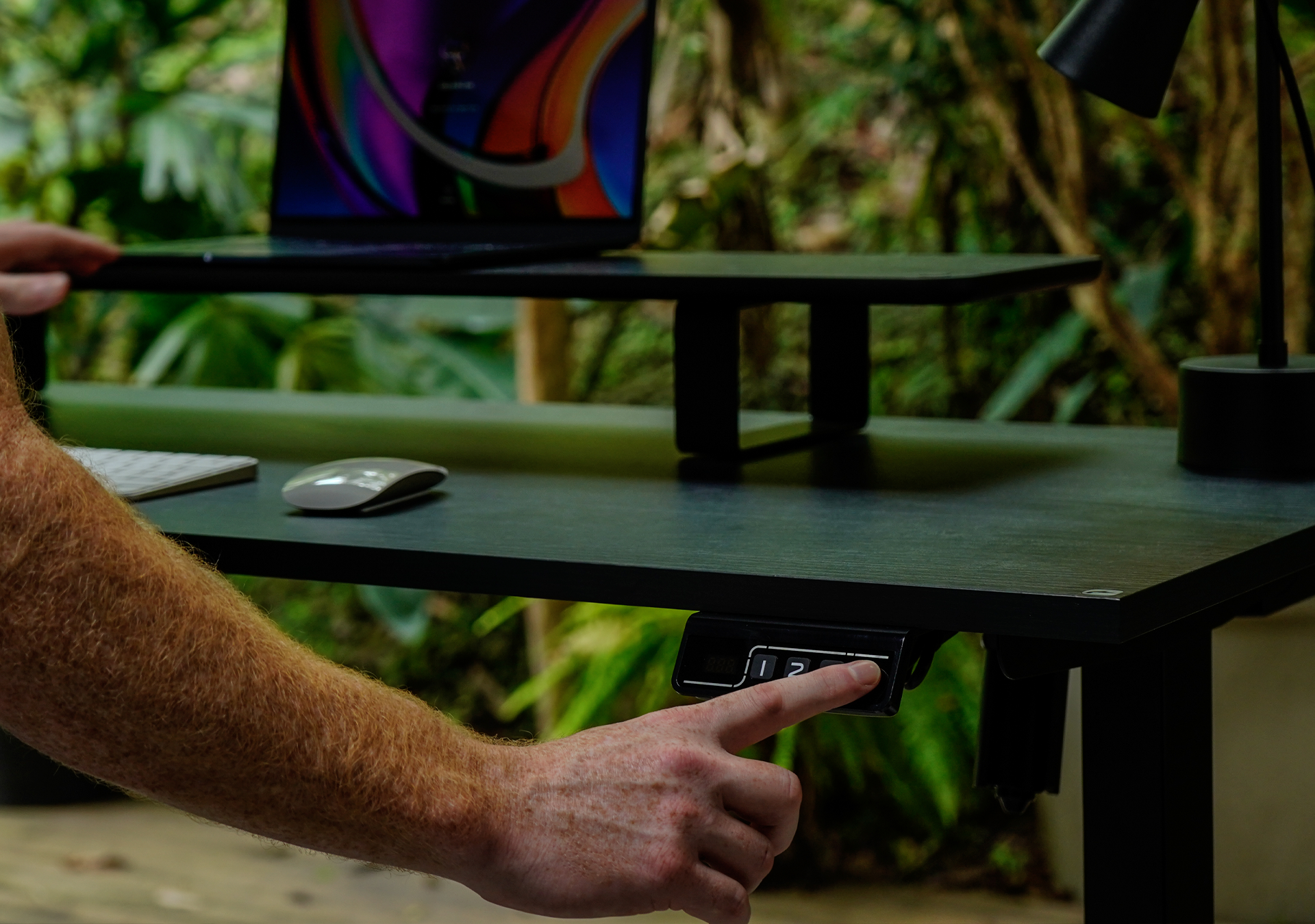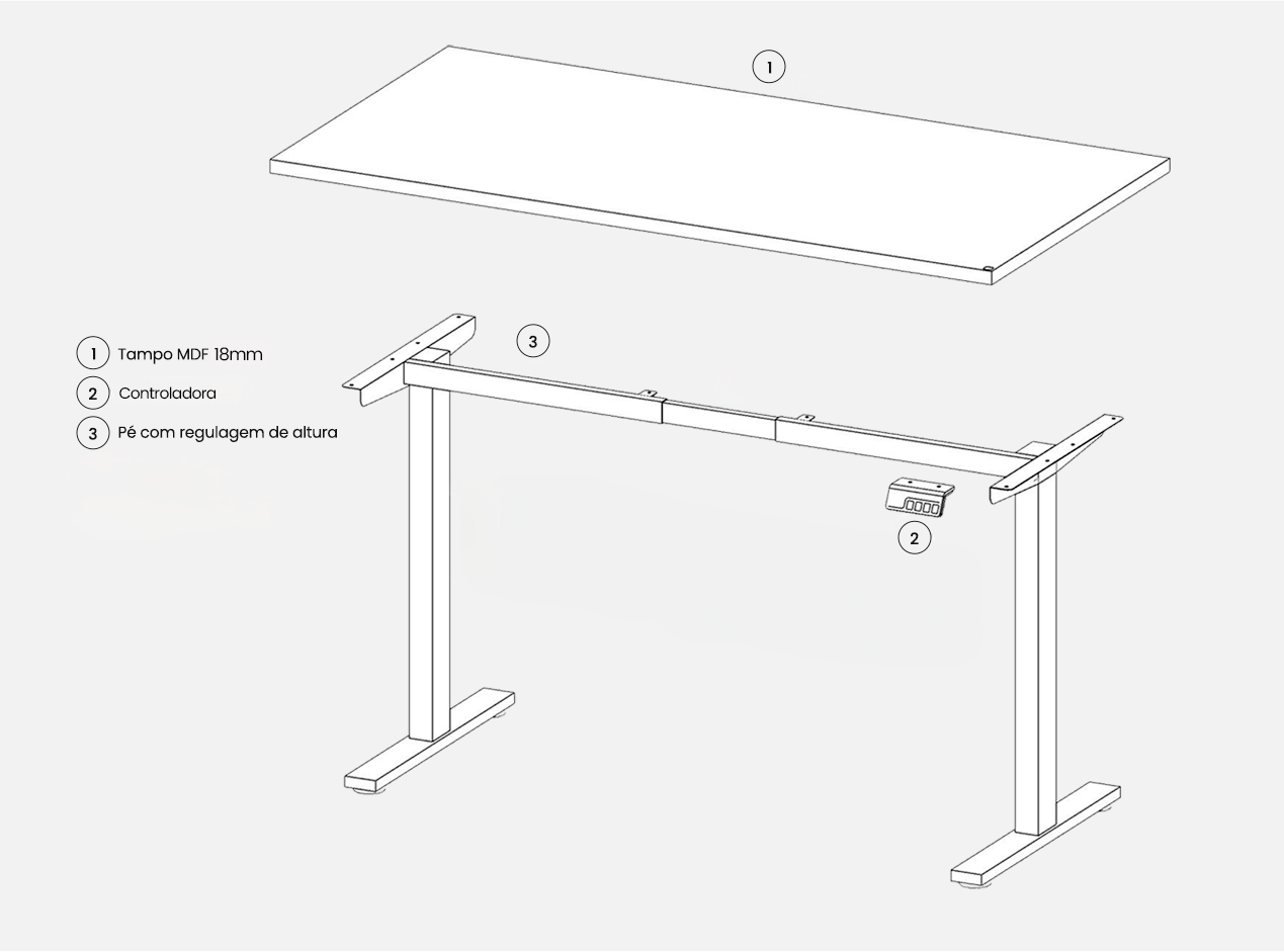 Ajuste de altura elétrico, que varia entre 70 e 115 cm, permite que você altere a posição de trabalho de forma rápida e prática, promovendo uma melhor ergonomia e saúde postural.